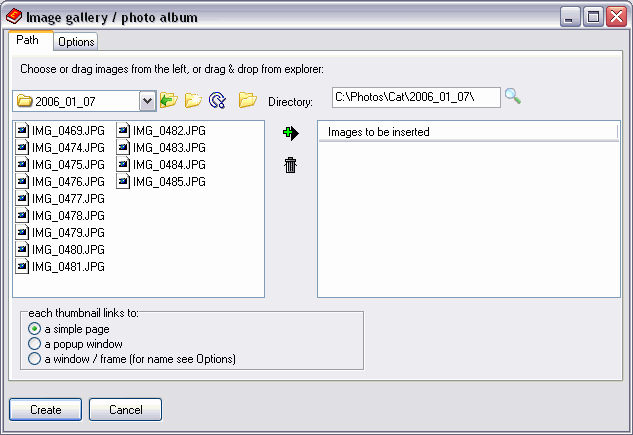 This feature permits you to create a photo album / image gallery quickly, by selecting a group of images, maybe from a digital camera (GOLD edition only).